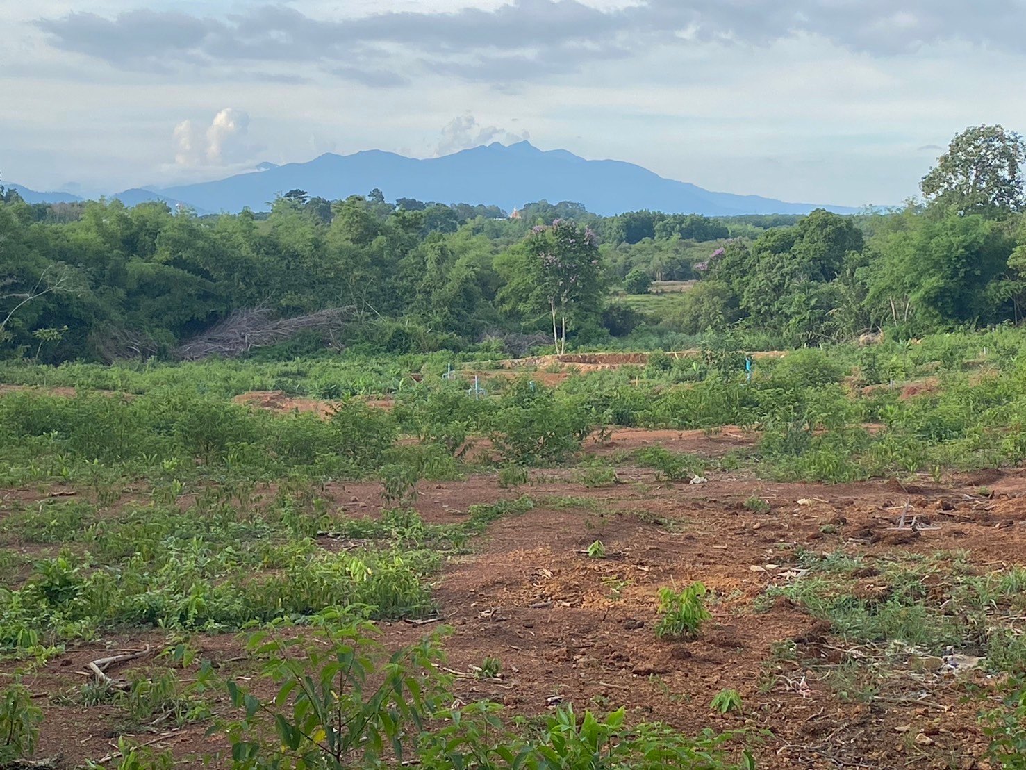 ตัวที่ดินมีลักษณะเป็นเนิน มองเห็นวิวพื้นราบด้านหลังและทิวเขา